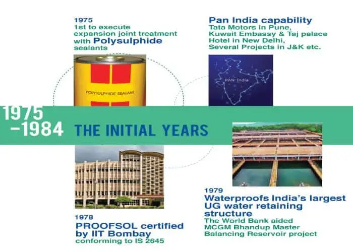 - 1979 – Differentiated capability becomes visible- Nina Successfully waterproofed India’s largest UG water retaining structure- The World Bank aided MCGM Bhandup Master Balancing Reservoir project.